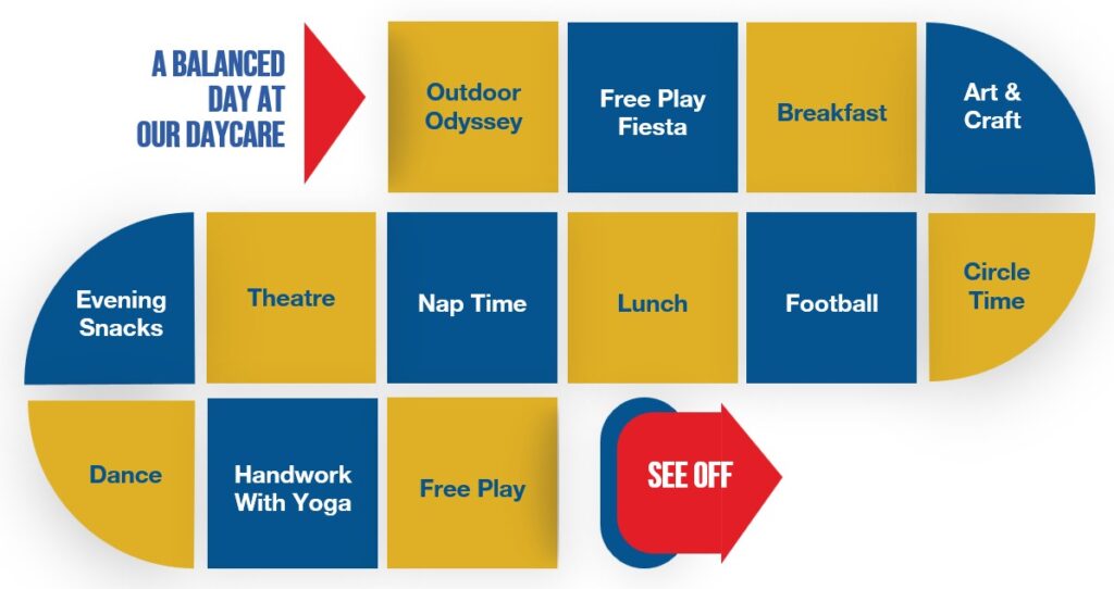 From drop-off to pickup, your child’s day is filled with art & craft, theatre & dance, sports & yoga — all wrapped in warm connections. Because they’re not just spending time — they’re growing through it.